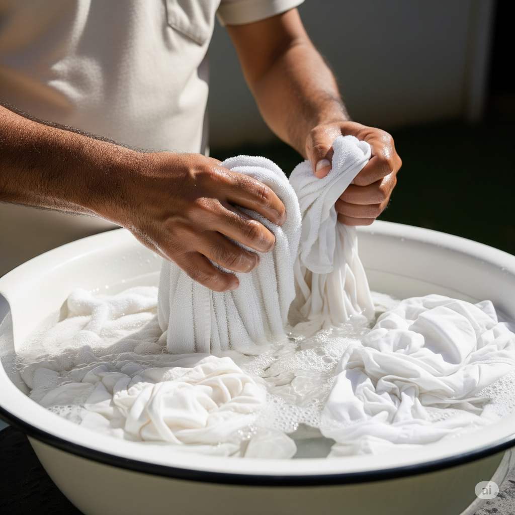 - 흰옷을 담그고 최소 1시간 이상 불린다.